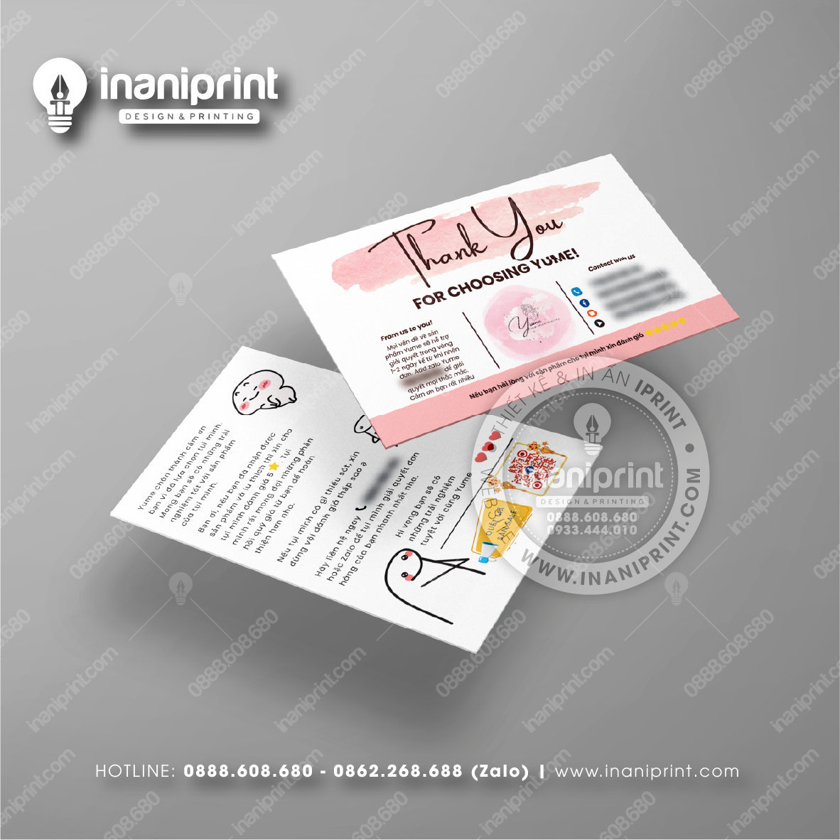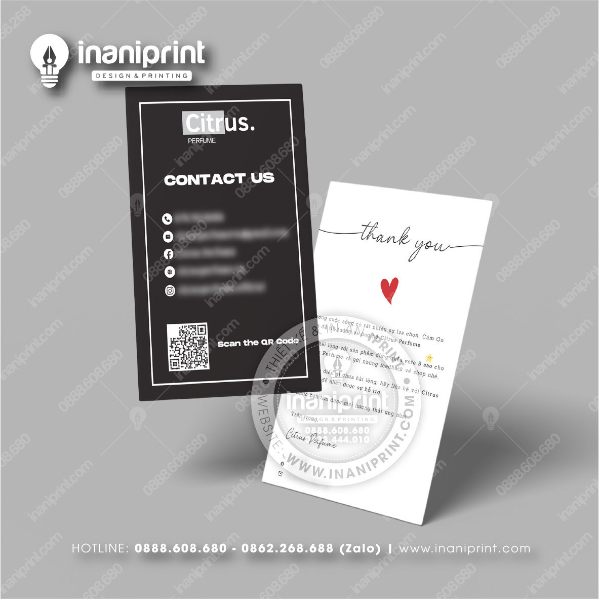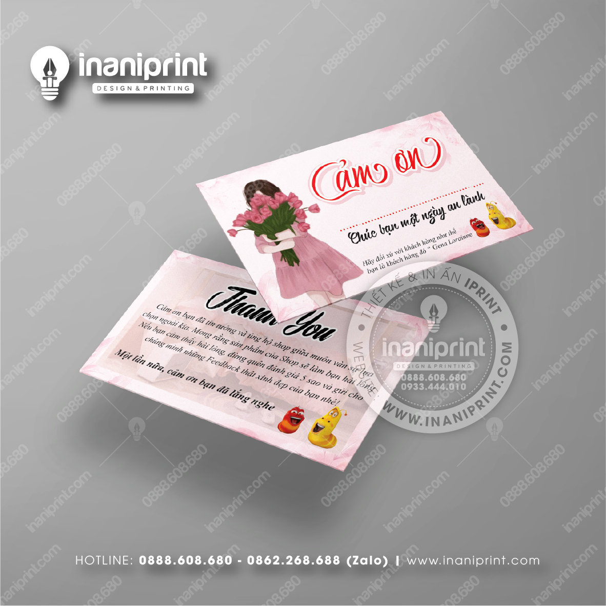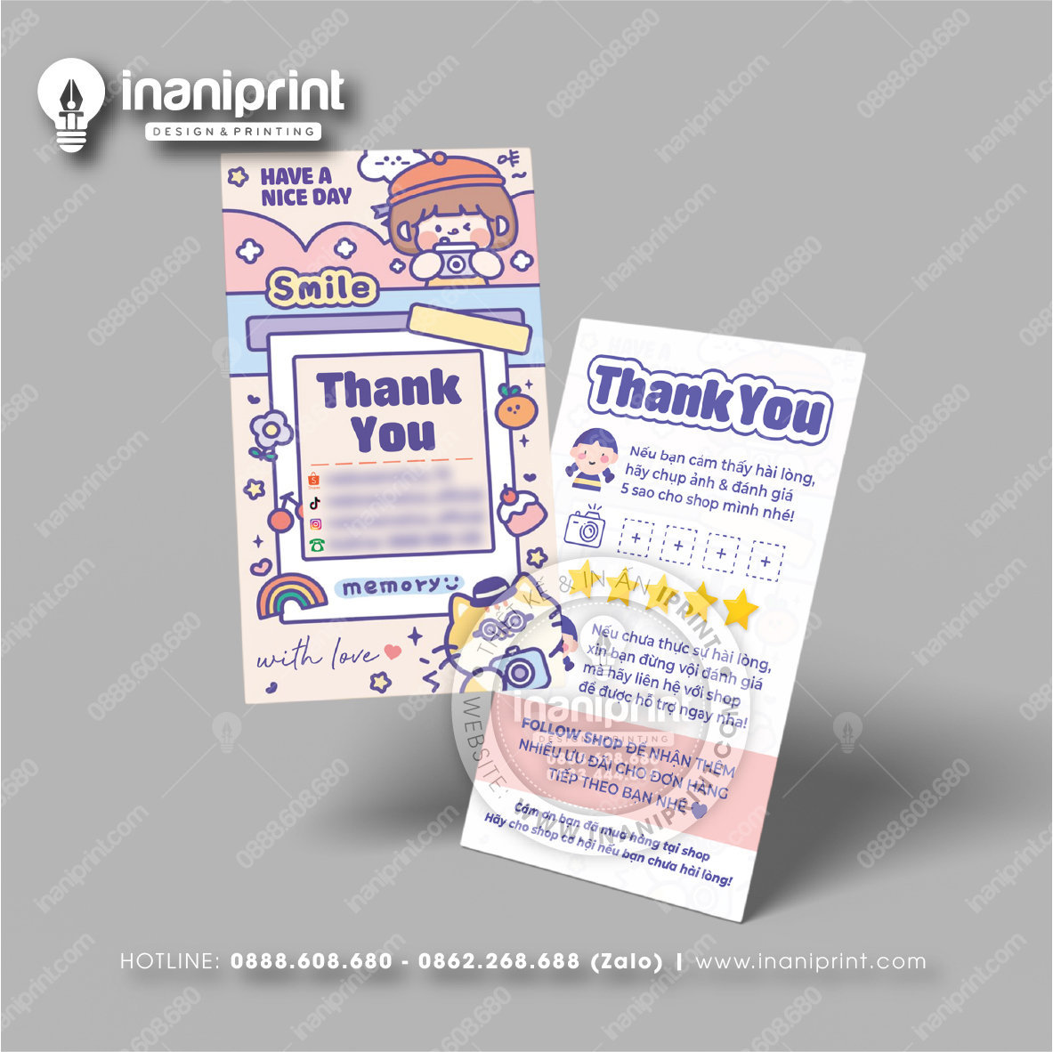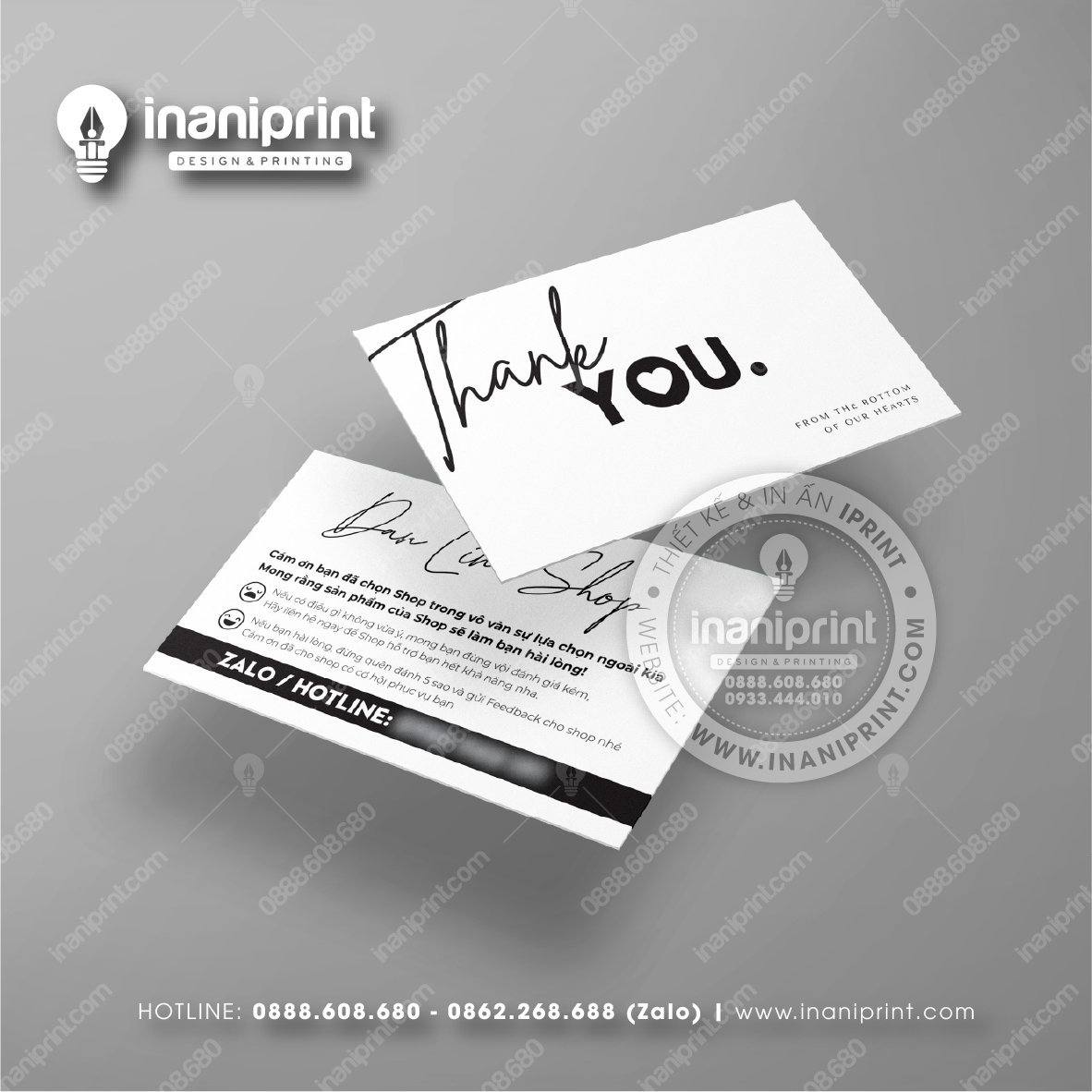 In Name Card Shop Mỹ Phẩm là quá trình thiết kế và in ra những tấm Danh Thiếp (Card Visit) có chứa thông tin quan trọng: tên, chức vụ, công ty, số điện thoại, email, website, logo. Chúng được in trên giấy (Couche, Bristol, mỹ thuật), nhựa hoặc PVC, bên cạnh đó là được áp dụng in offset hay kỹ thuật số, cùng các gia công tăng tính thẩm mỹ và độ bền (cán màng, ép kim).
