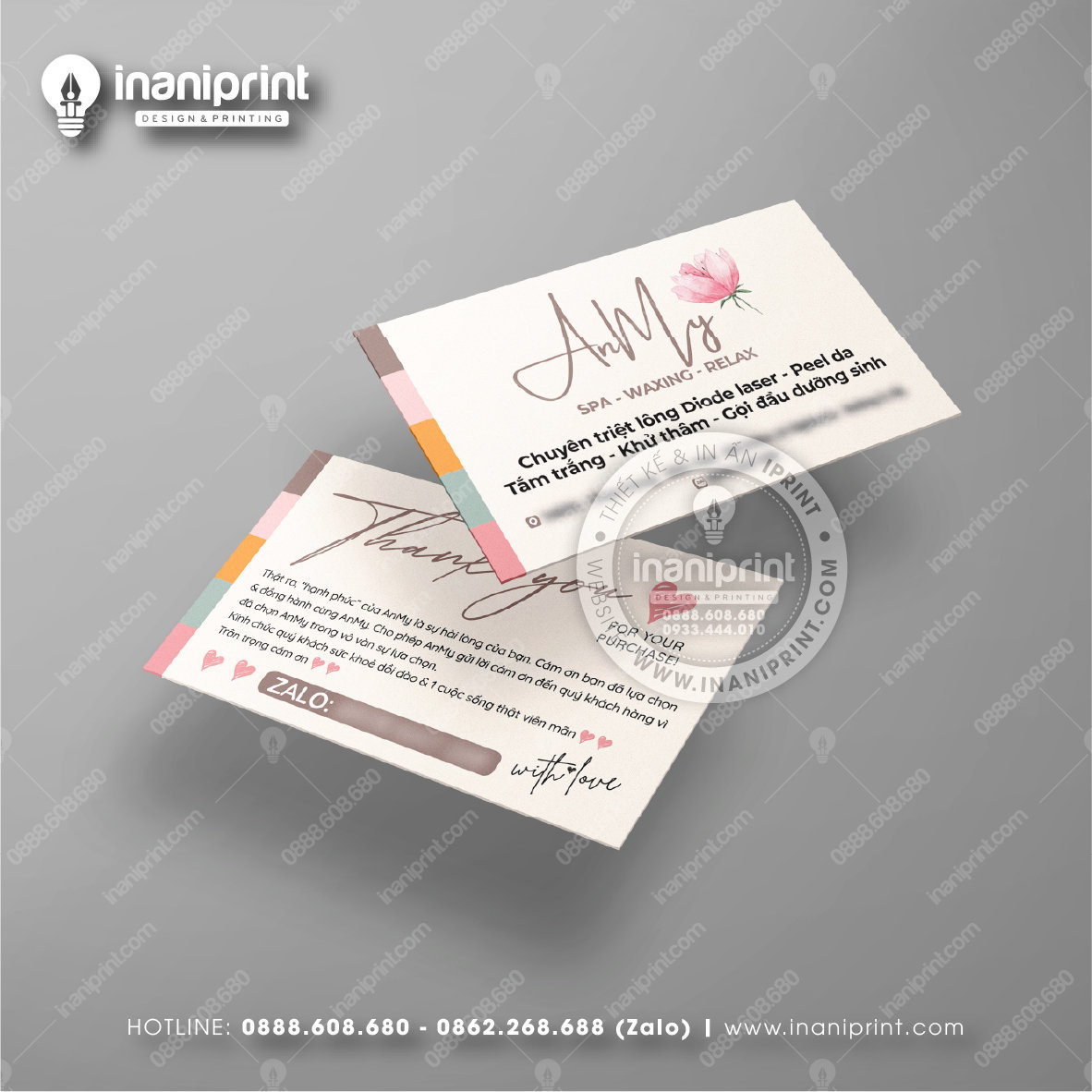Danh Thiếp Spa Không chỉ là công cụ trao đổi thông tin, Name Card Spa còn là cách thể hiện đẳng cấp và gu thẩm mỹ của một spa chuyên nghiệp. Một chiếc Card Visit Spa được thiết kế sang trọng, tối giản và tinh tế sẽ khiến khách hàng ấn tượng ngay từ lần đầu tiên cầm trên tay.