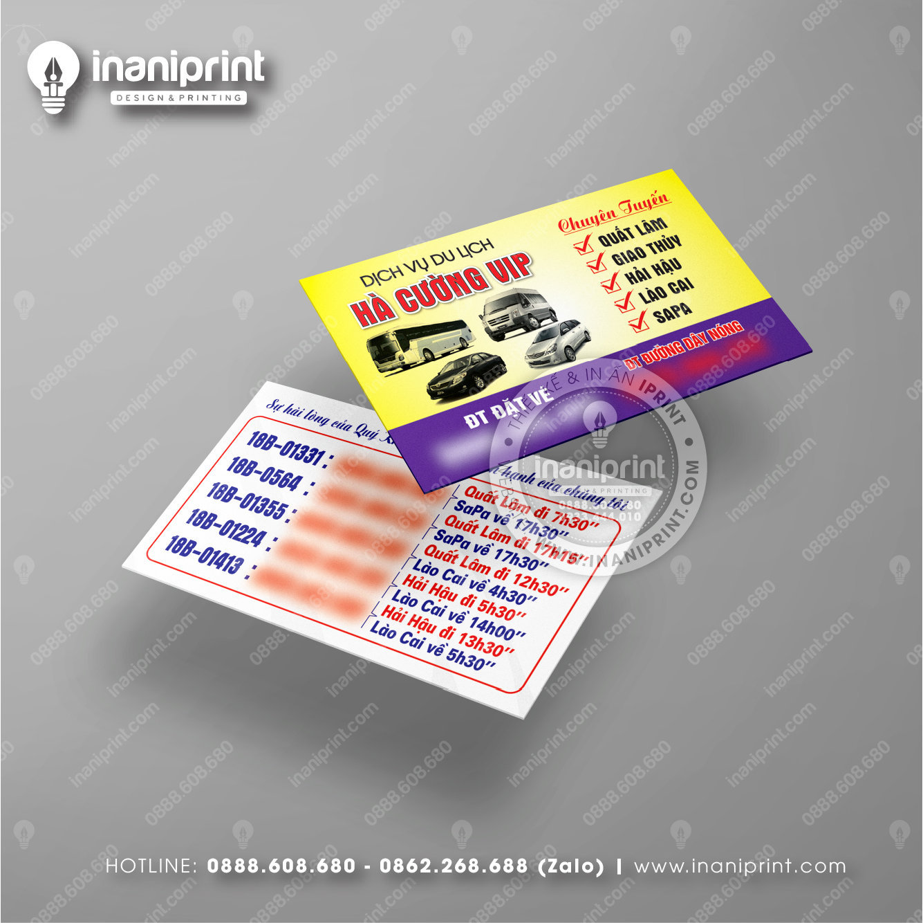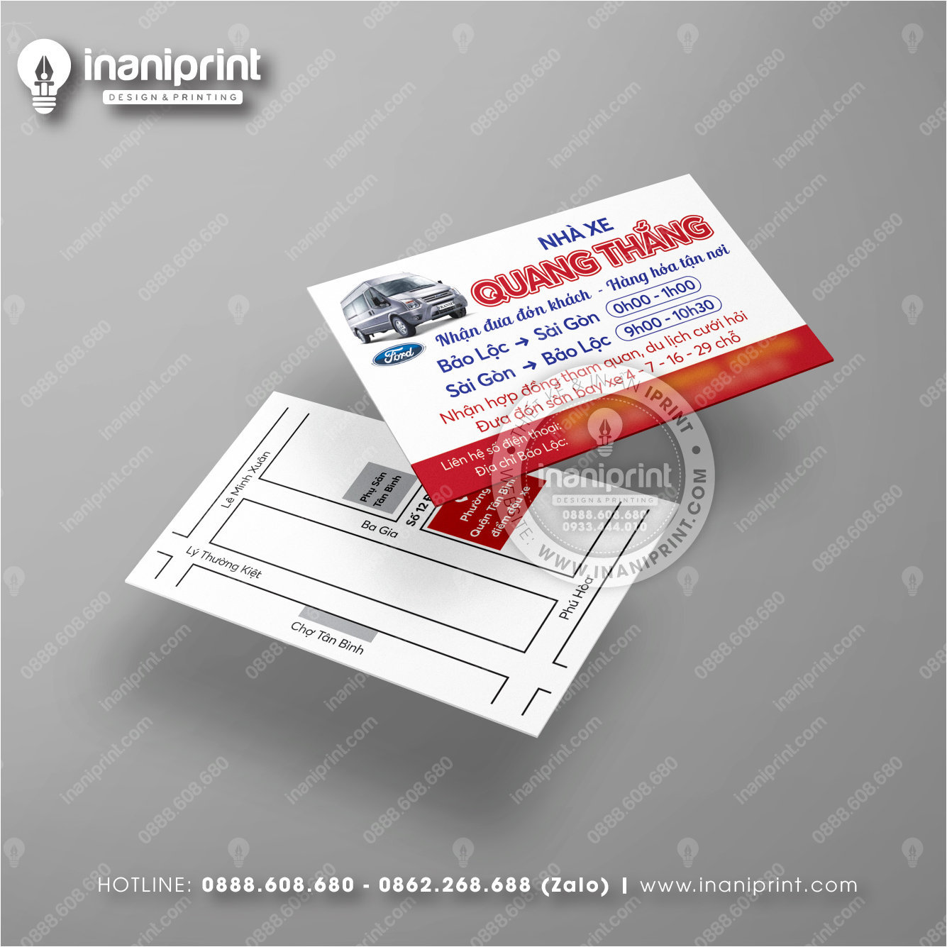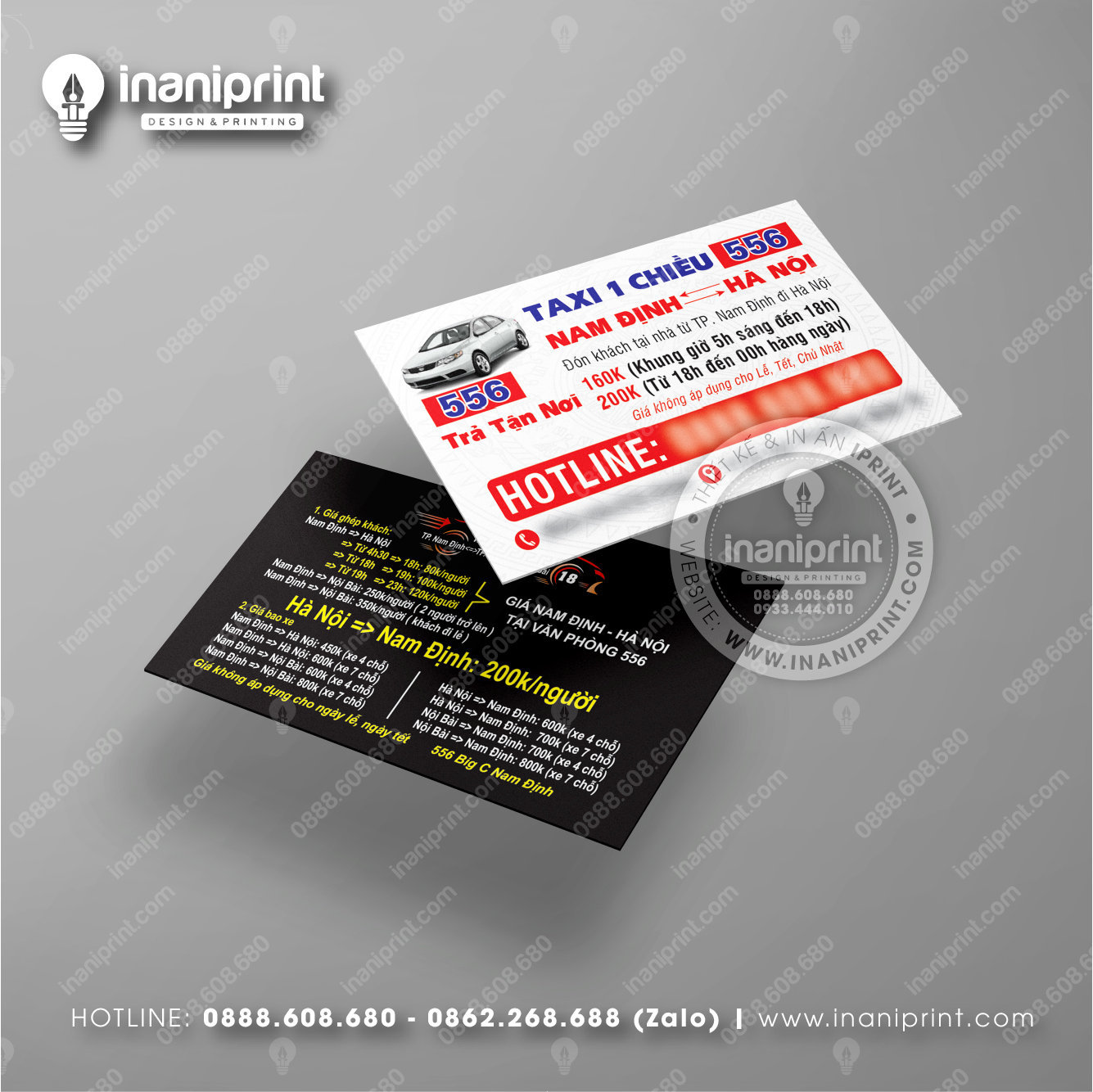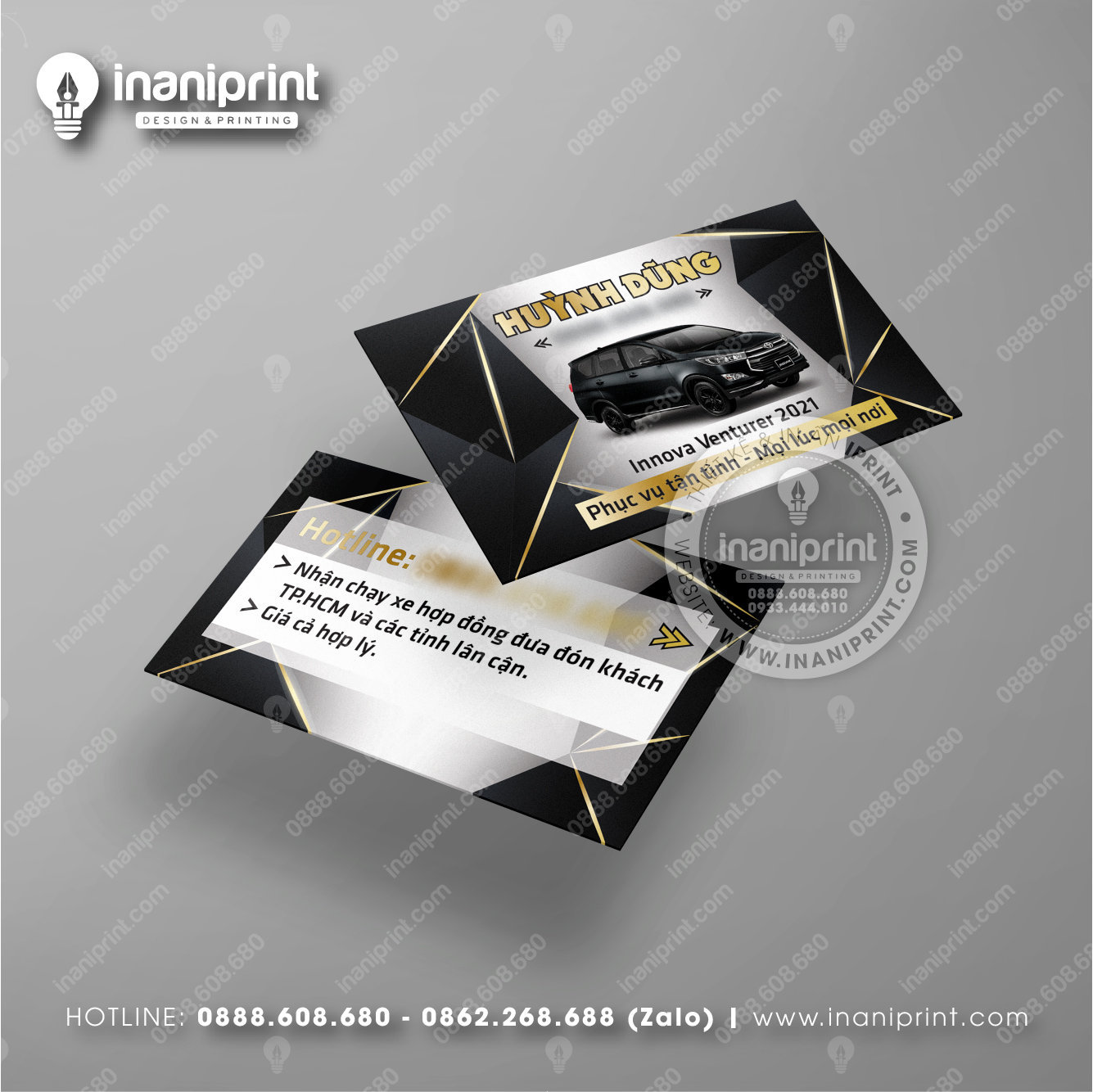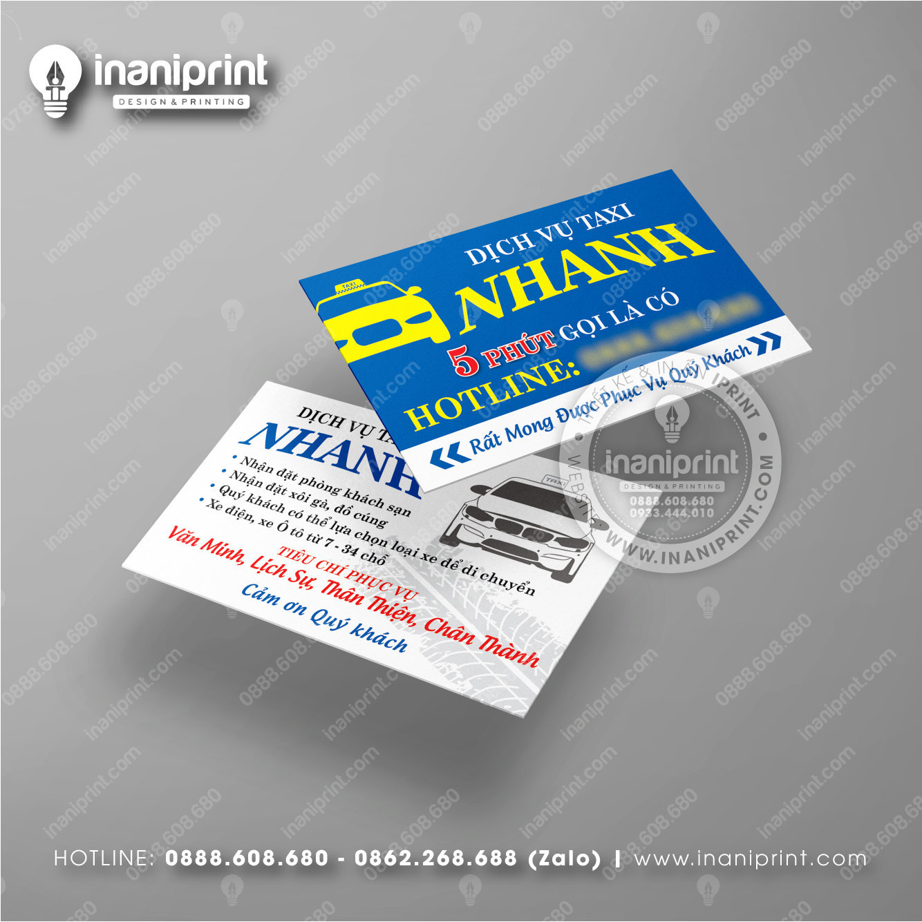 Thông thường, bên mình sẽ gợi ý khách hàng sử dụng các kích thước In Name Card chuẩn là 5,4x9cm hoăc 5x9cm. Tuy nhiên, tùy theo yêu cầu riêng, sở thích cá nhân mà chúng tôi sẽ giúp khách hàng lựa chọn kích thước Danh Thiếp Taxi đẹp nhất. Bên cạnh đó, chúng tôi cũng sẽ kết hợp với một số hình thức gia công để mẫu card đạt được tính thẩm mỹ cao nhất.