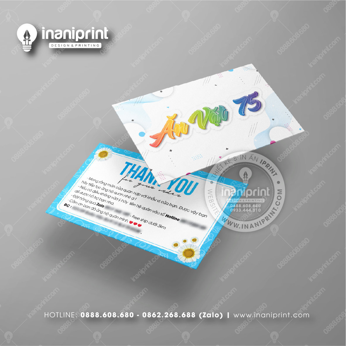 Kích thước tiêu chuẩn thường là 9cm x 5.4cm hoặc 9cm x 11cm, nhưng bạn có thể chọn kích thước khác để tạo sự khác biệt. Hình dạng có thể là hình chữ nhật, vuông, hoặc các hình dạng đặc biệt khác.