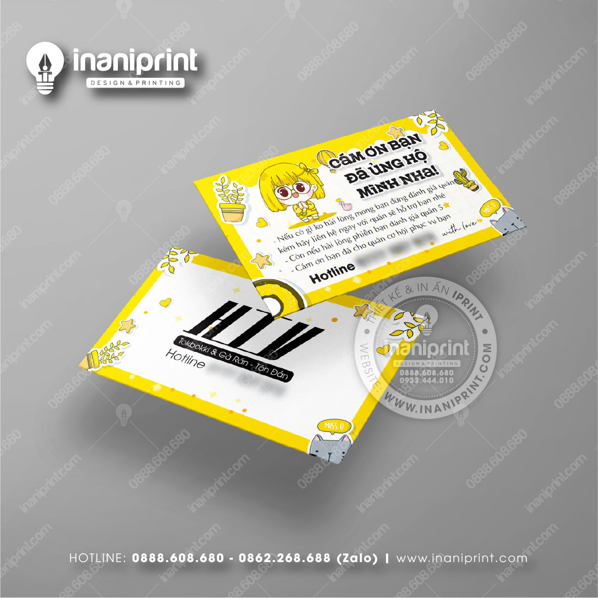 - Quảng bá thương hiệu: Danh Thiếp Quán Ăn Vặt là công cụ quảng bá hiệu quả, giúp khách hàng dễ dàng nhớ đến nhà hàng hoặc quán ăn của bạn. Thiết kế đẹp mắt và thông tin rõ ràng giúp khách hàng dễ dàng liên hệ và quay lại.