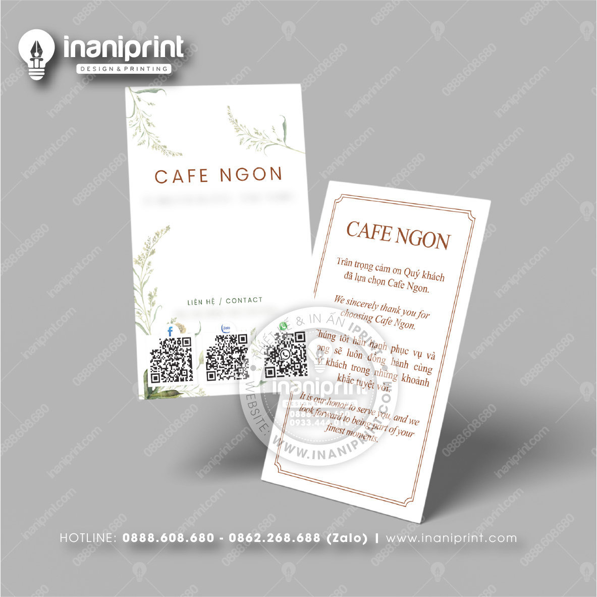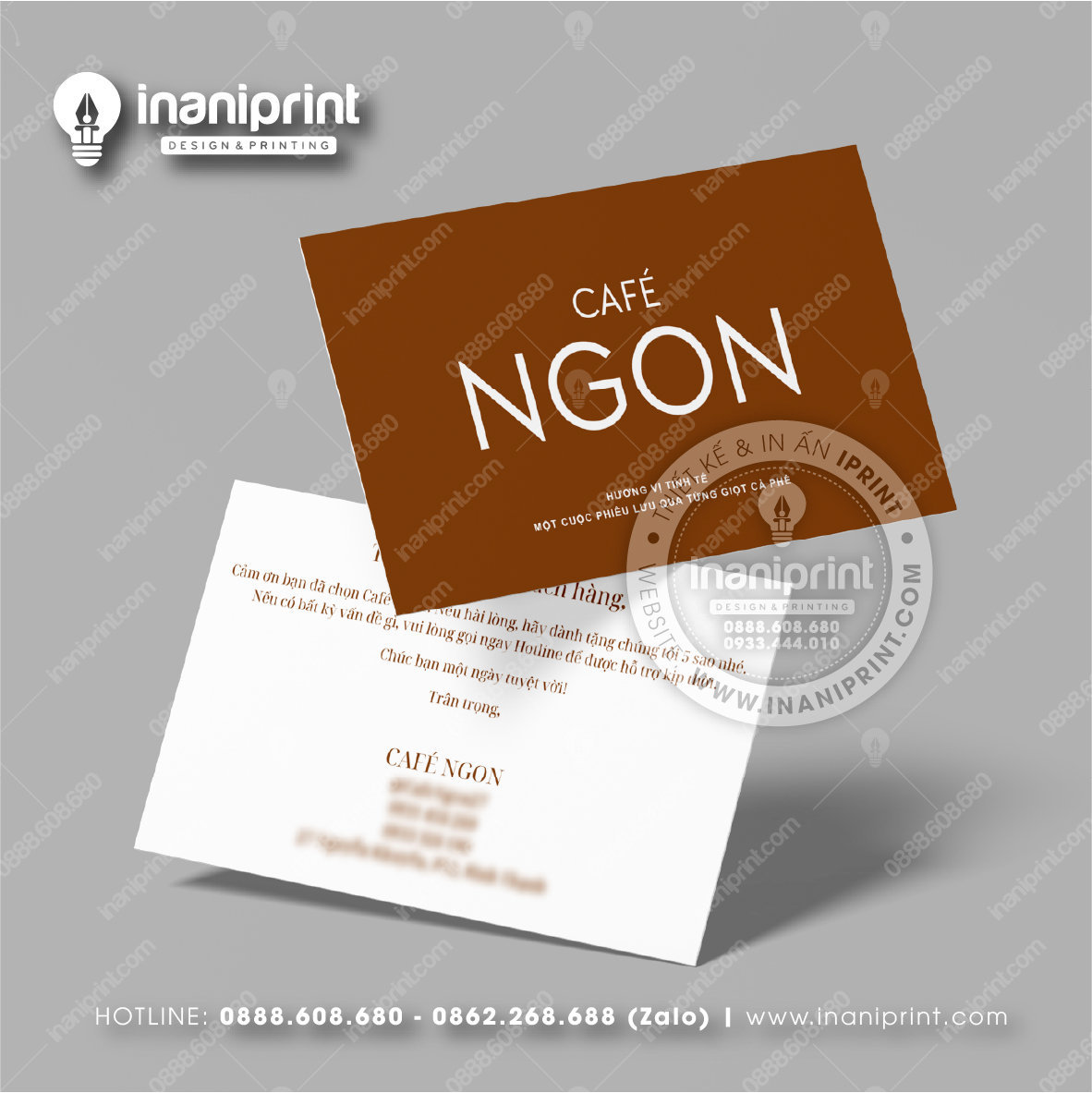 Trong chiến lược nhận diện thương hiệu, việc quan tâm đặc biệt đến Card Visit Quán Cafe là không thể thiếu. Khi một khách hàng ghé thăm và lấy một chiếc Danh Thiếp Cafe, đó có thể coi là một bước tiến quan trọng. Nếu khách hàng quyết định giữ lại chiếc Danh Thiếp Của Quán Cafe, điều này có nghĩa là họ sẽ lưu giữ thông tin và có thể chia sẻ với bạn bè hoặc người thân. Như vậy, chiếc Name Card Tiệm Cafe không chỉ là một tờ giấy thông thường, mà còn là một công cụ vô hình giúp bạn thu hút thêm khách hàng đến quán.
