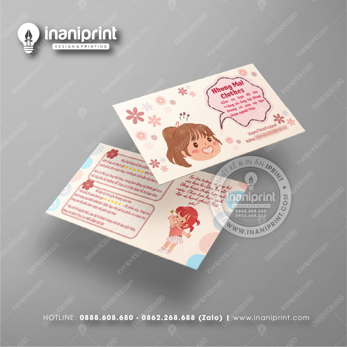 Một tấm Danh Thiếp của thương hiệu thời trang cao cấp thường có thiết kế tối giản, sang trọng với chất liệu giấy mỹ thuật cao cấp và kỹ thuật ép kim tinh xảo. Ngược lại, một card visit shop quần áo trẻ em sẽ ưu tiên màu sắc tươi sáng, hình ảnh vui nhộn để thu hút cả phụ huynh và các bé.