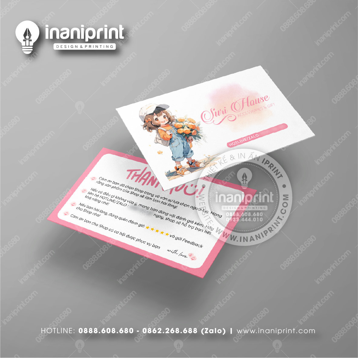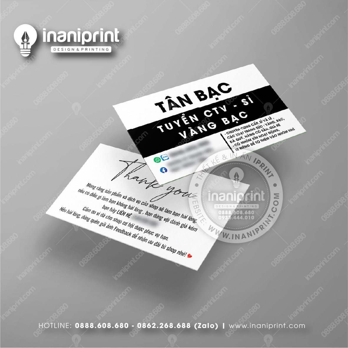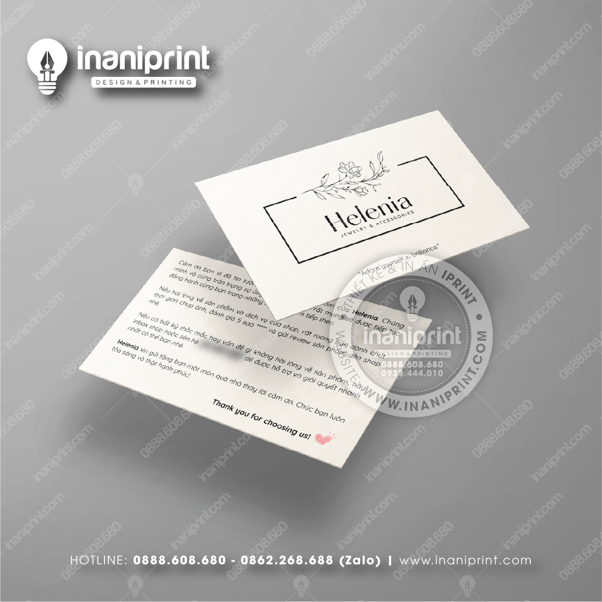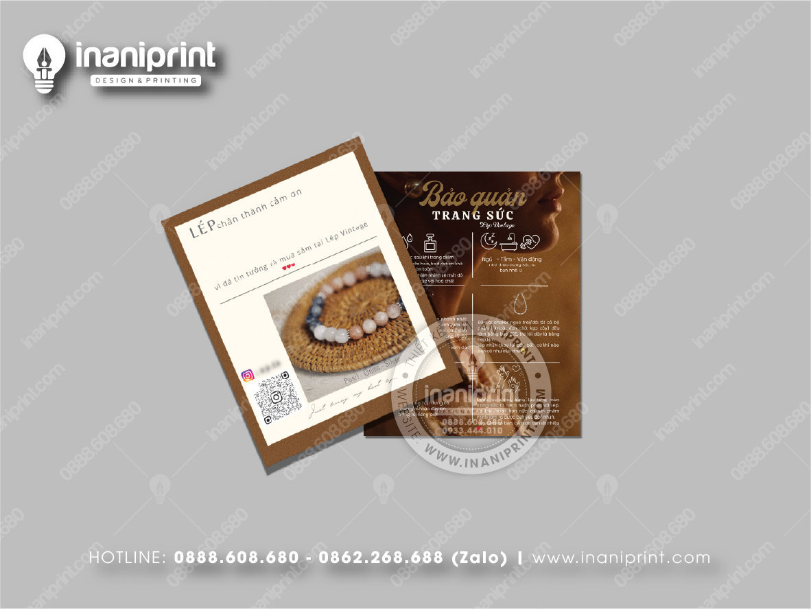Công Cụ Marketing Trực Tiếp & Chi Phí Thấp: So với các hình thức quảng cáo khác, in Name Card Shop Trang Sức có chi phí cực kỳ hợp lý. Bạn có thể dễ dàng đính kèm nó vào túi đựng đồ của khách hàng, trao cho đối tác, hoặc để tại quầy thanh toán. Đây là cách marketing trực tiếp, hiệu quả và bền bỉ.