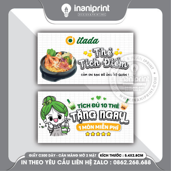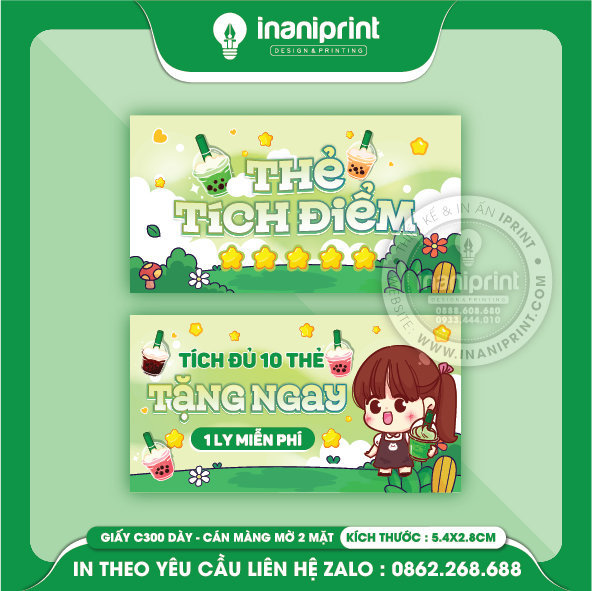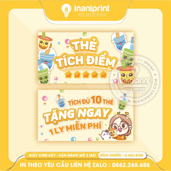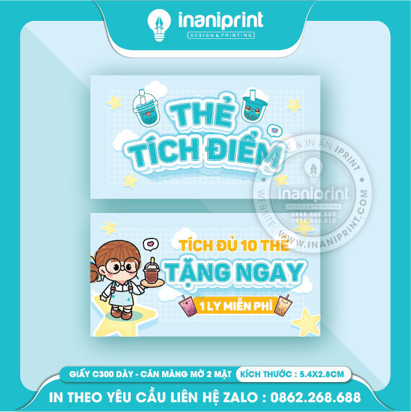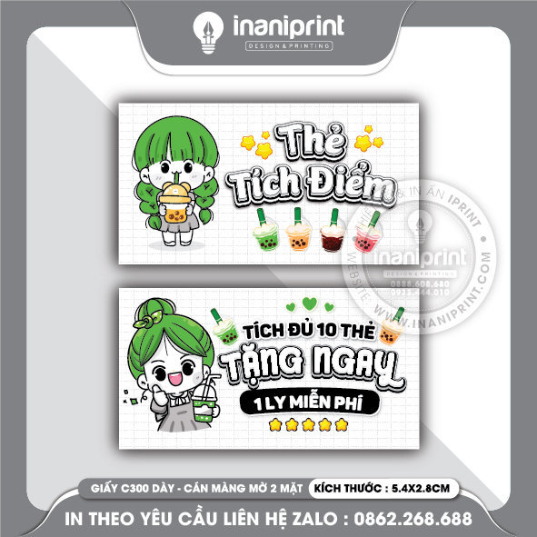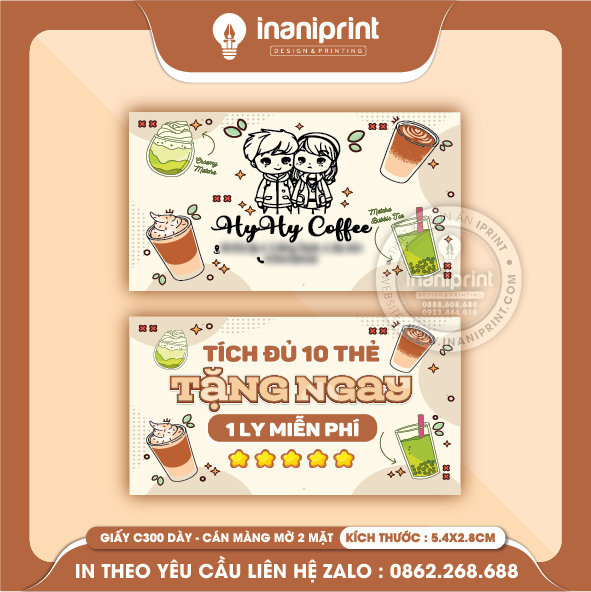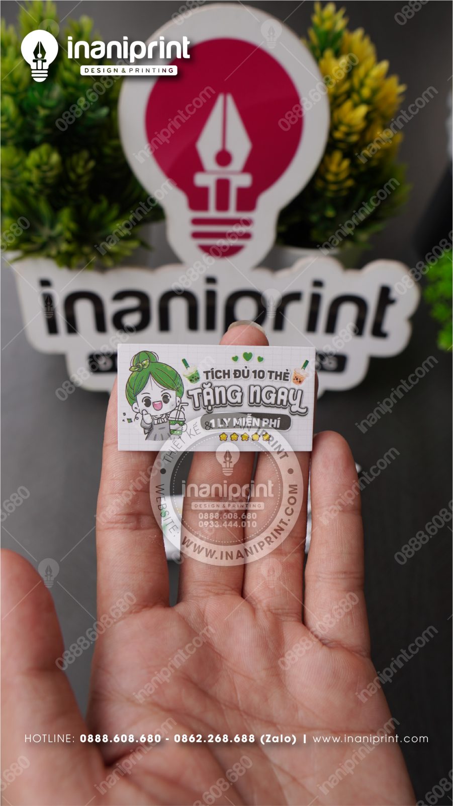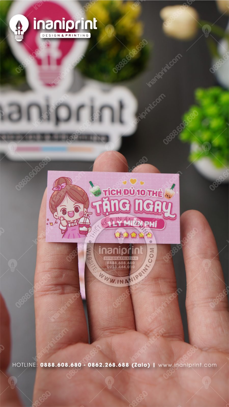 Phiếu Tích Điểm Quán Trà Sữa – Cà Phê có thể là thẻ giấy, thẻ nhựa cứng giống như thẻ ngân hàng, hoặc thậm chí là một tờ giấy có các ô để đóng dấu hoặc dán sticker.