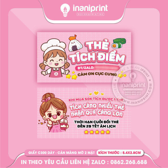 Thẻ cứng (nhựa, giấy): Thường được thiết kế đẹp mắt, có in logo và thông tin thương hiệu. Khách hàng xuất trình thẻ mỗi khi mua hàng để nhân viên ghi nhận điểm hoặc đóng dấu.